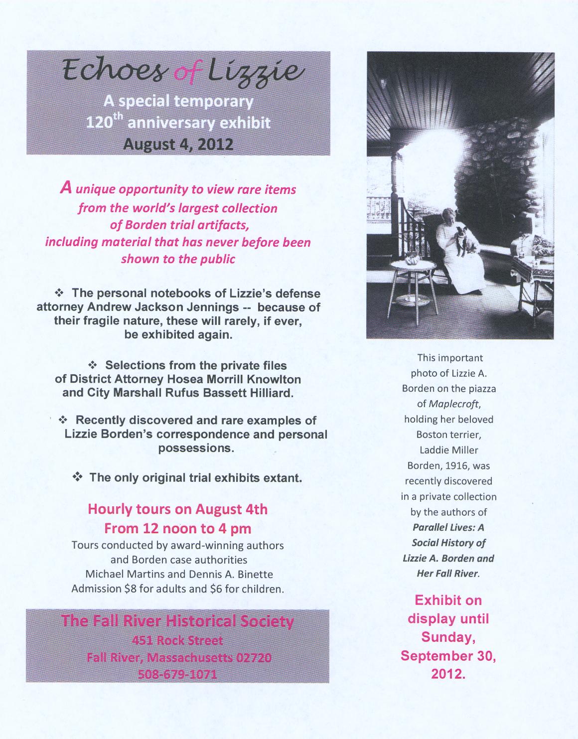Monday, March 12, 2012 issue of the Boston Globe has an article on the recent acquisition of Lizzie Borden’s lawyer’s notebooks, made during the trial. Andrew Jennings was the Borden family attorney and lead defense member all during her legal troubles. While he did not take the lead in the trial itself, the family having […]