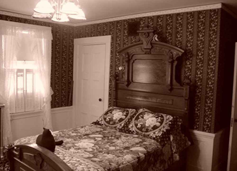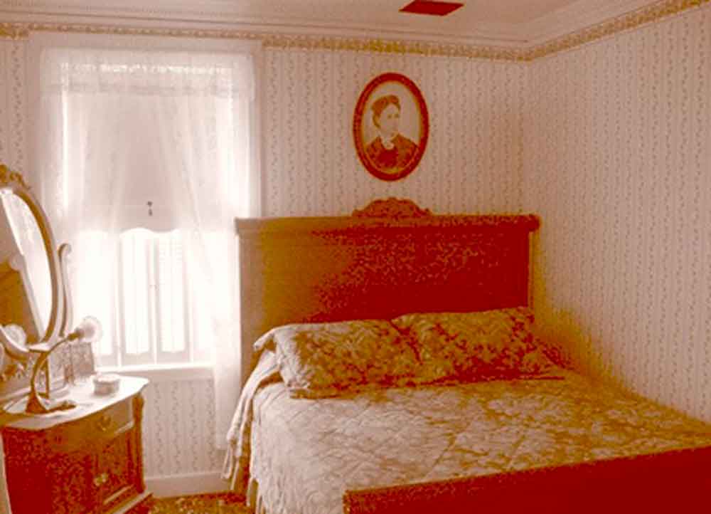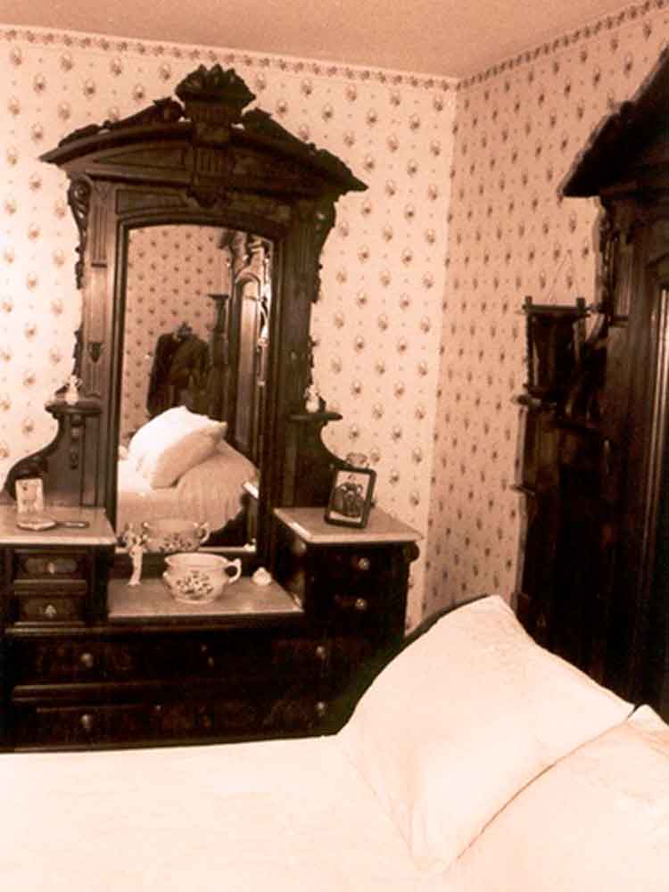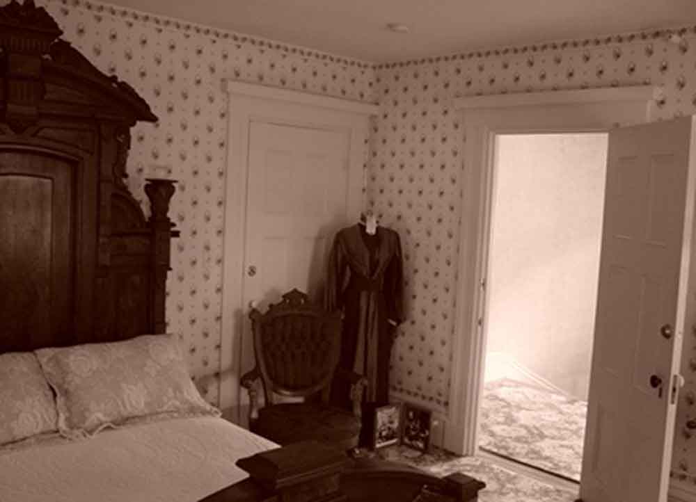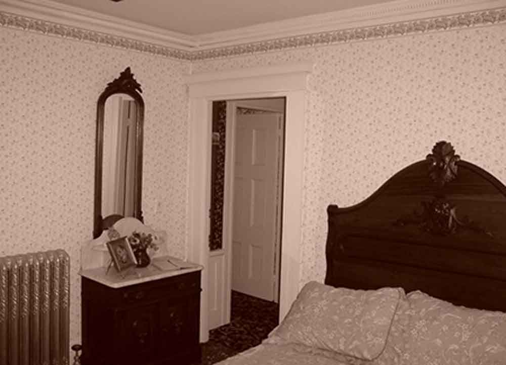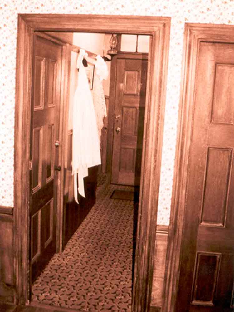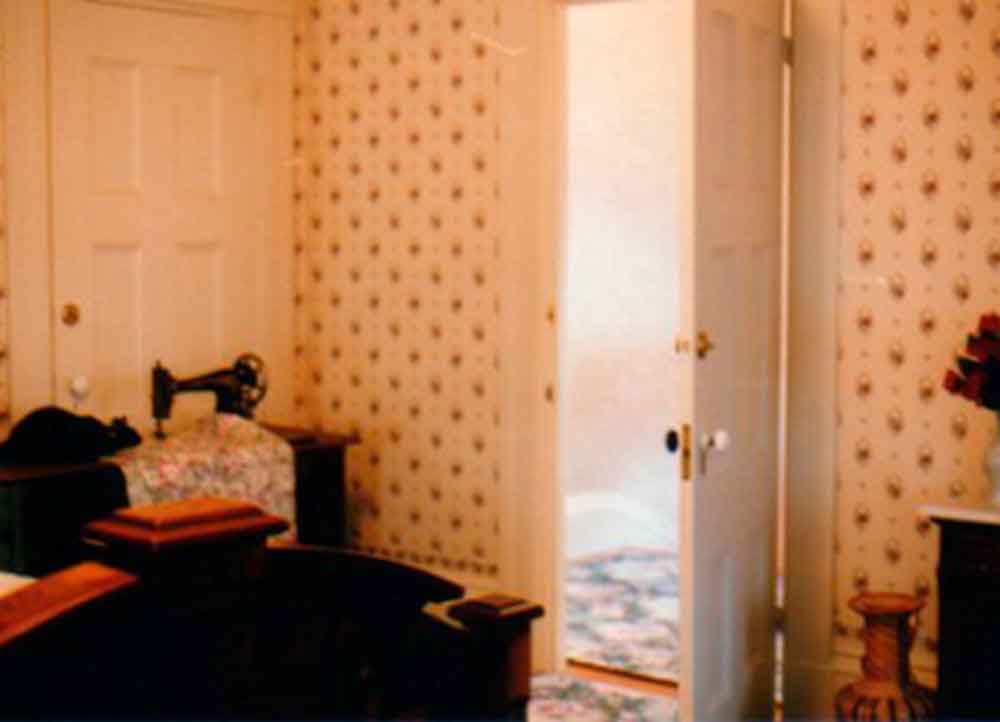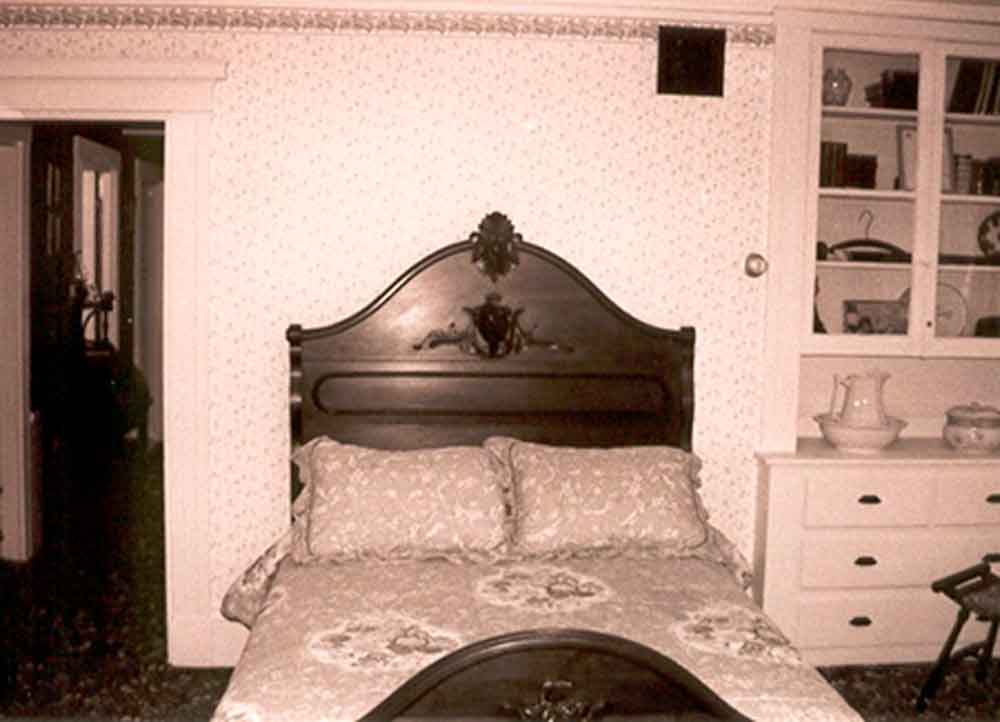 On the second floor of the Borden house is located the guest bedroom (also used as Lizzie and Emma’s sitting room), Lizzie and Emma’s bedrooms, and Andrew and Abby’s bedroom. As is quite common in Fall River, there are no hallways in this house. Each room opens onto another, necessitating locked doors for privacy’s sake.