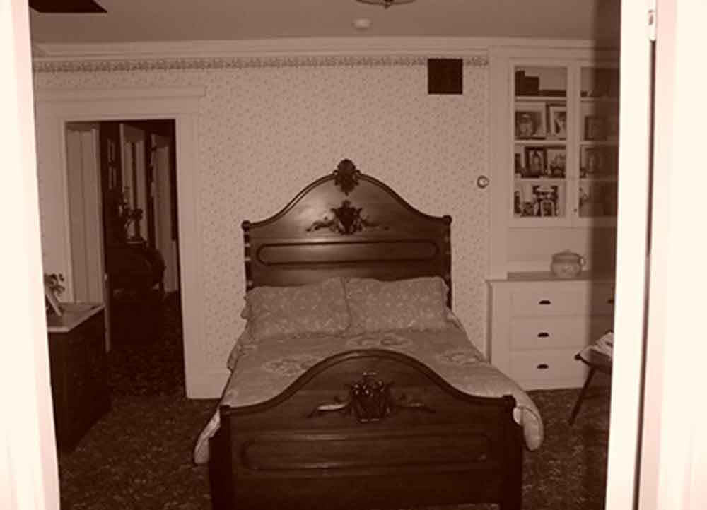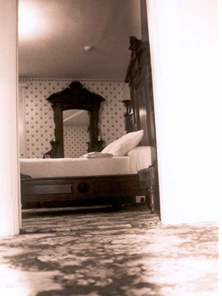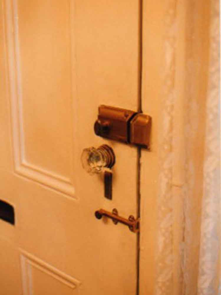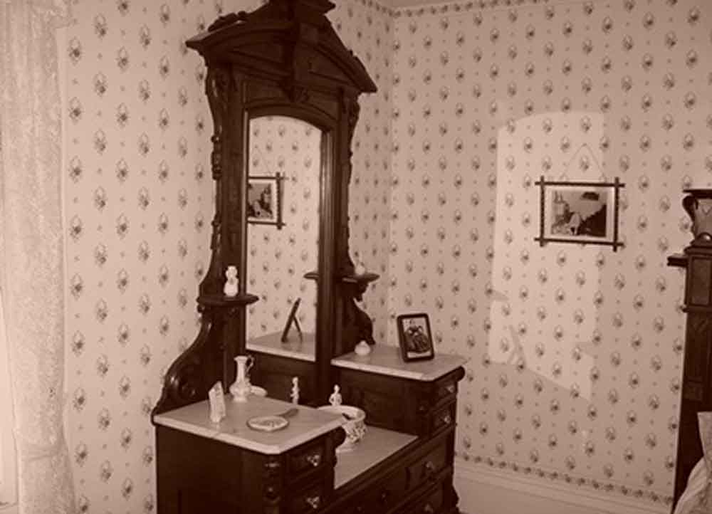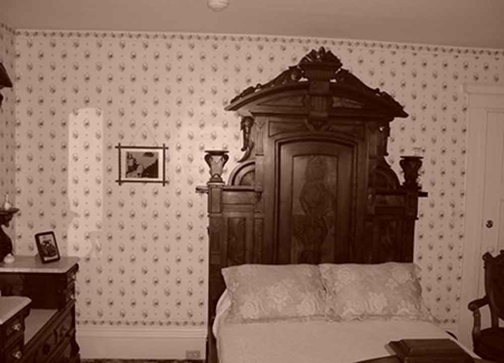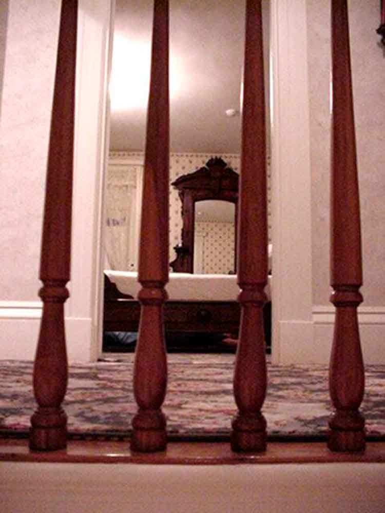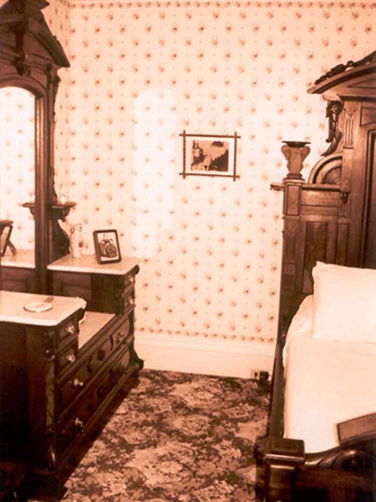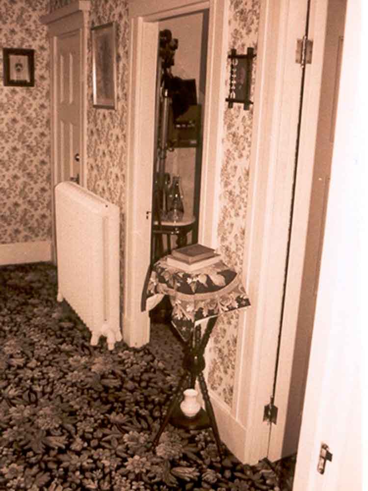 On the second floor of the Borden house is located the guest bedroom (also used as Lizzie and Emma’s sitting room), Lizzie and Emma’s bedrooms, and Andrew and Abby’s bedroom. As is quite common in Fall River, there are no hallways in this house. Each room opens onto another, necessitating locked doors for privacy’s sake.