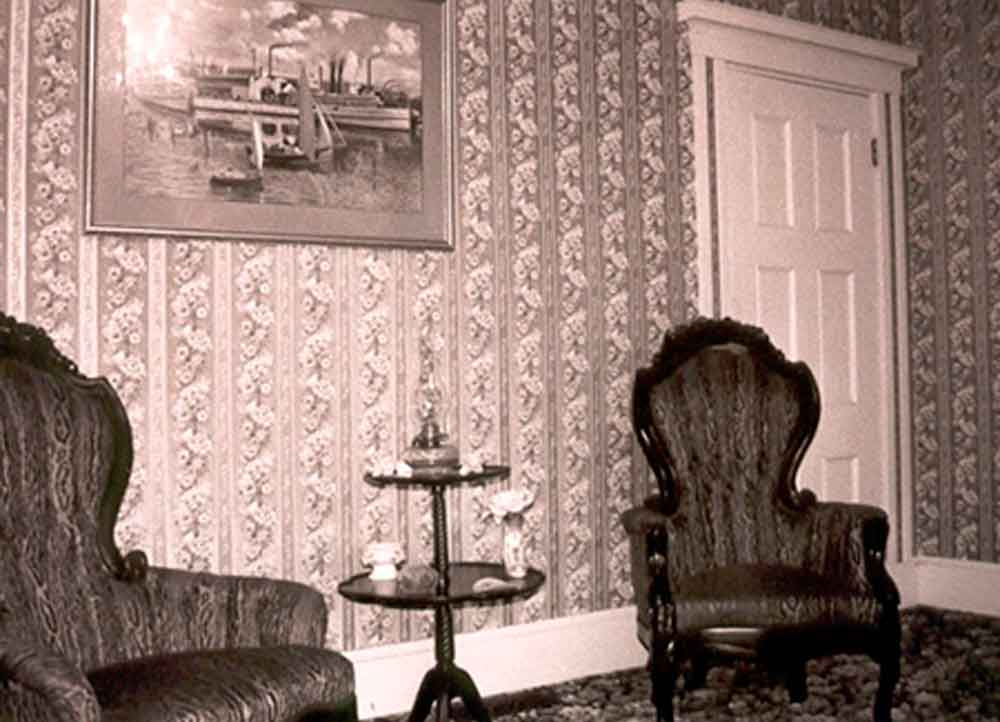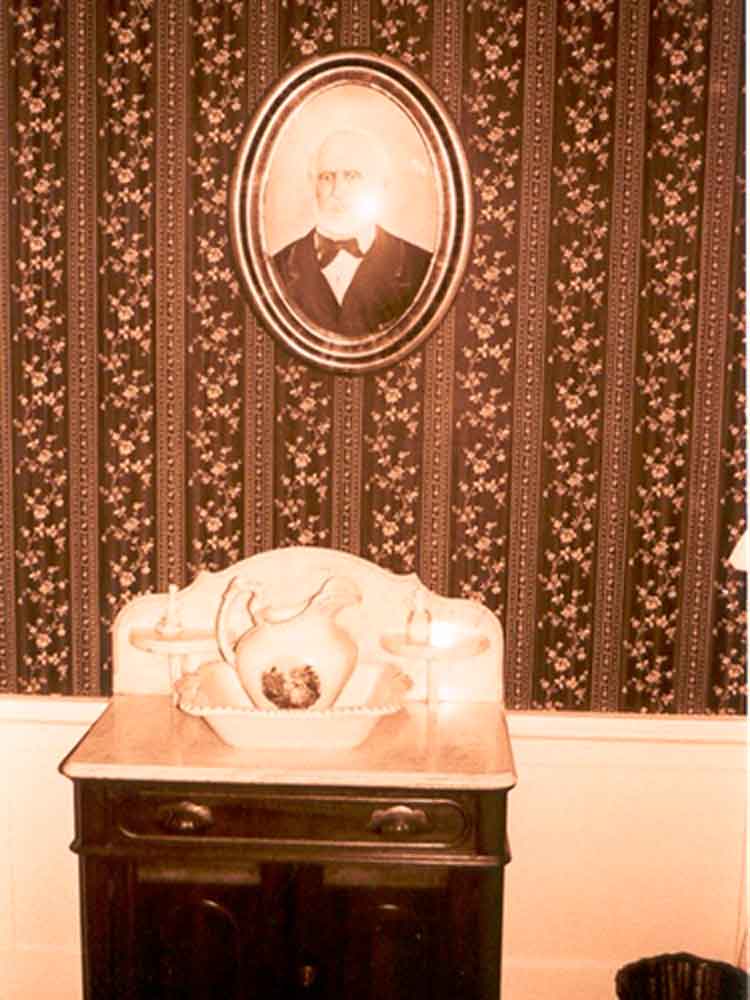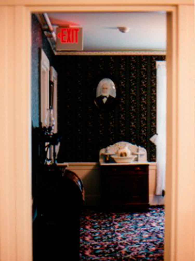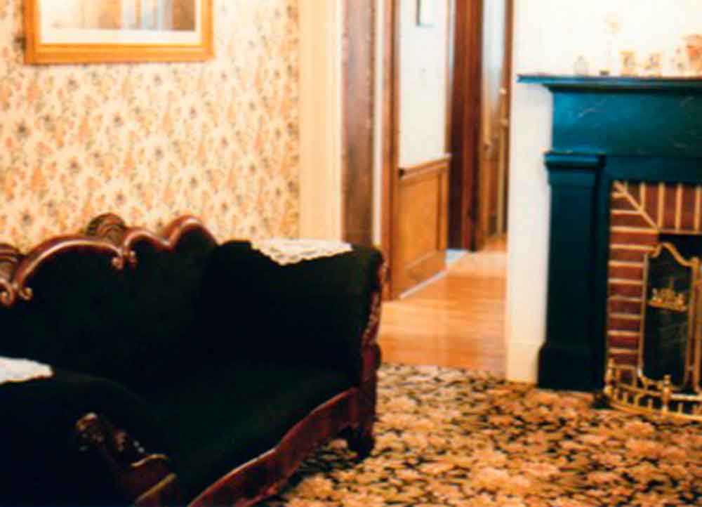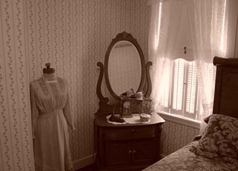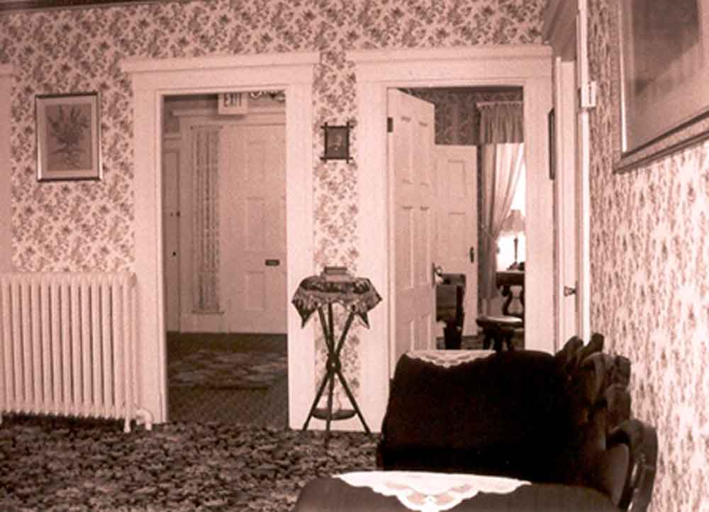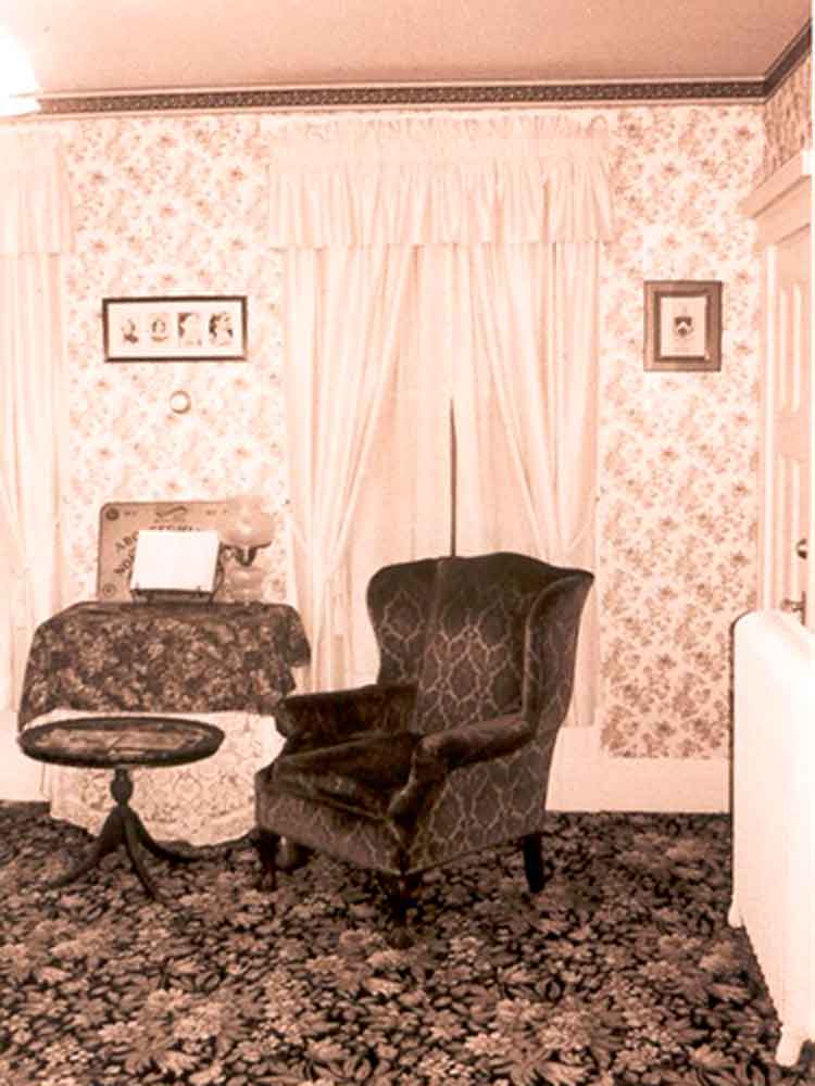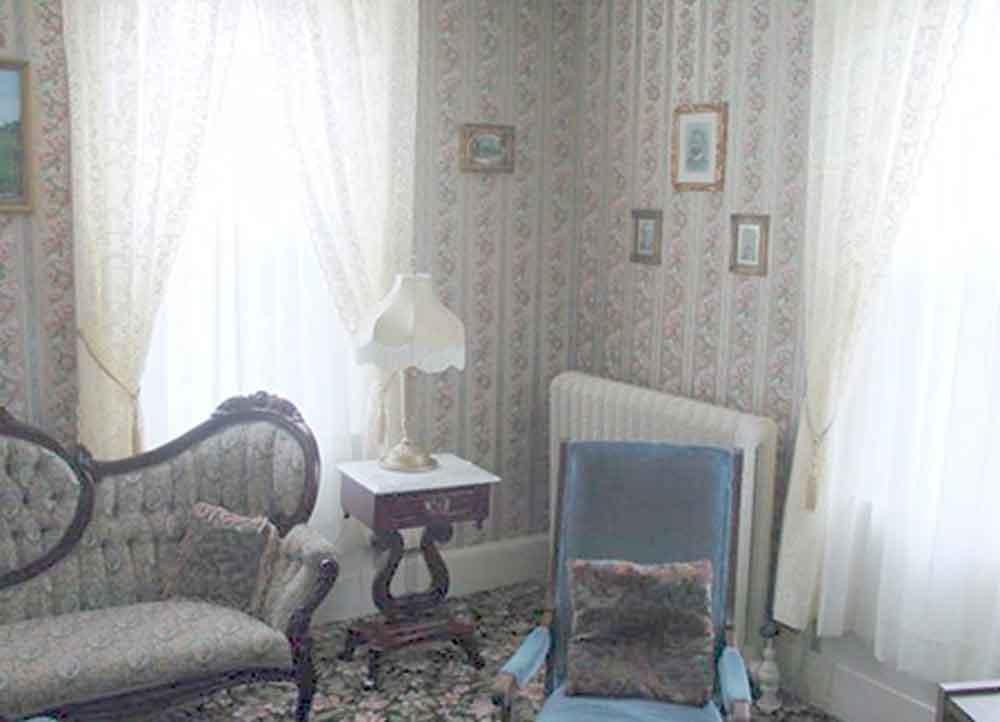 On the second floor of the Borden house is located the guest bedroom (also used as Lizzie and Emma’s sitting room), Lizzie and Emma’s bedrooms, and Andrew and Abby’s bedroom. As is quite common in Fall River, there are no hallways in this house. Each room opens onto another, necessitating locked doors for privacy’s sake.