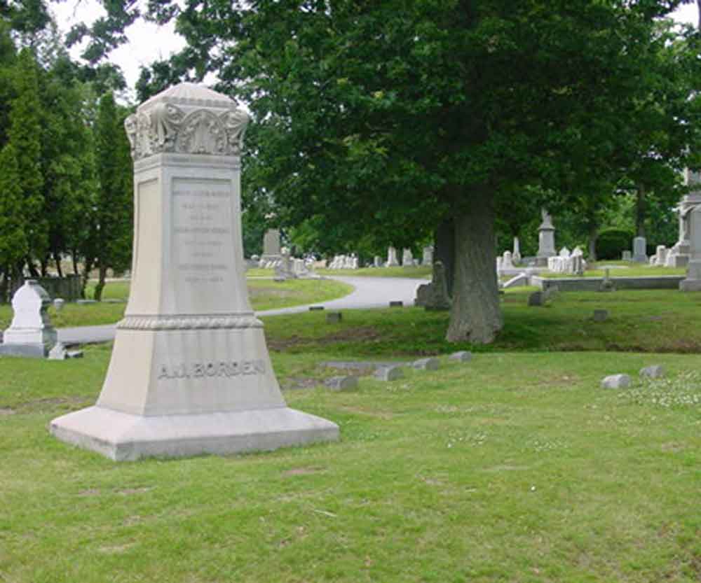 Oak Grove Cemetery in Fall River, Massachusetts, is the final resting place for the Borden family. Here are many images of the plots and grounds. Special thanks goes to John Clark for these marvelous photos.
