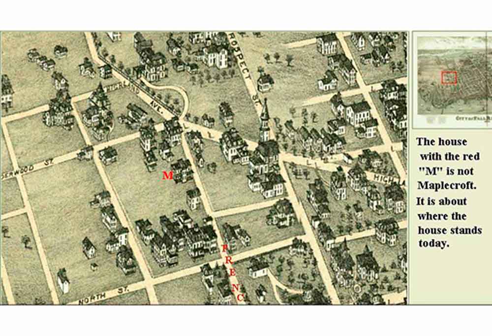 Thank you, Sherry Chapman, for the first eleven images of Maplecroft in this gallery. They were taken in 2003 on her visit to Fall River to conduct research for her book on the Borden case, Lizzie Borden: Resurrections.