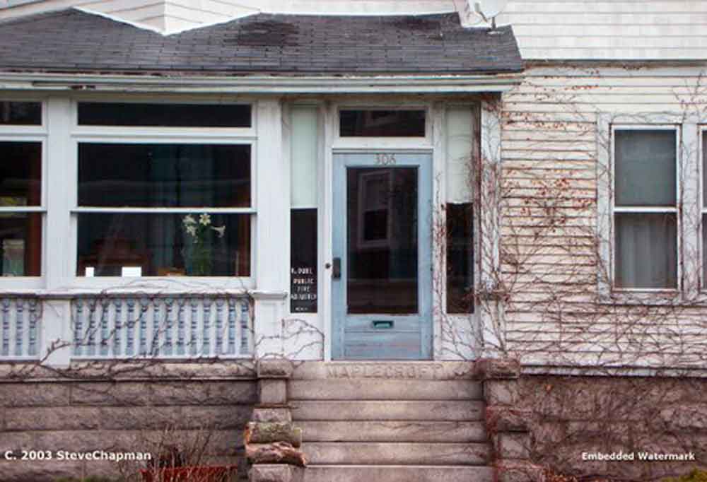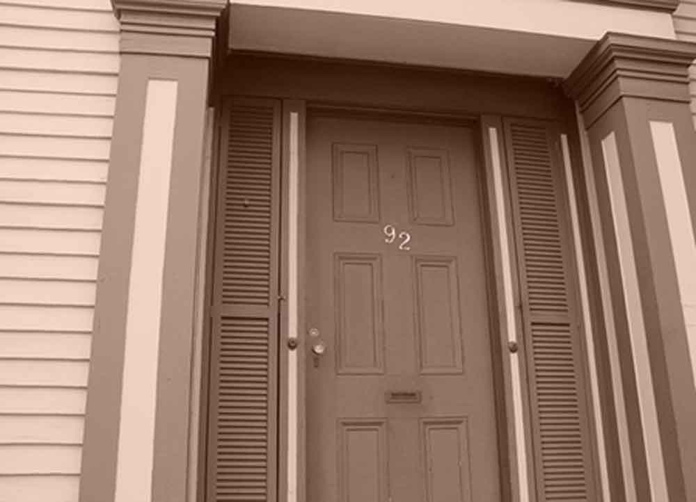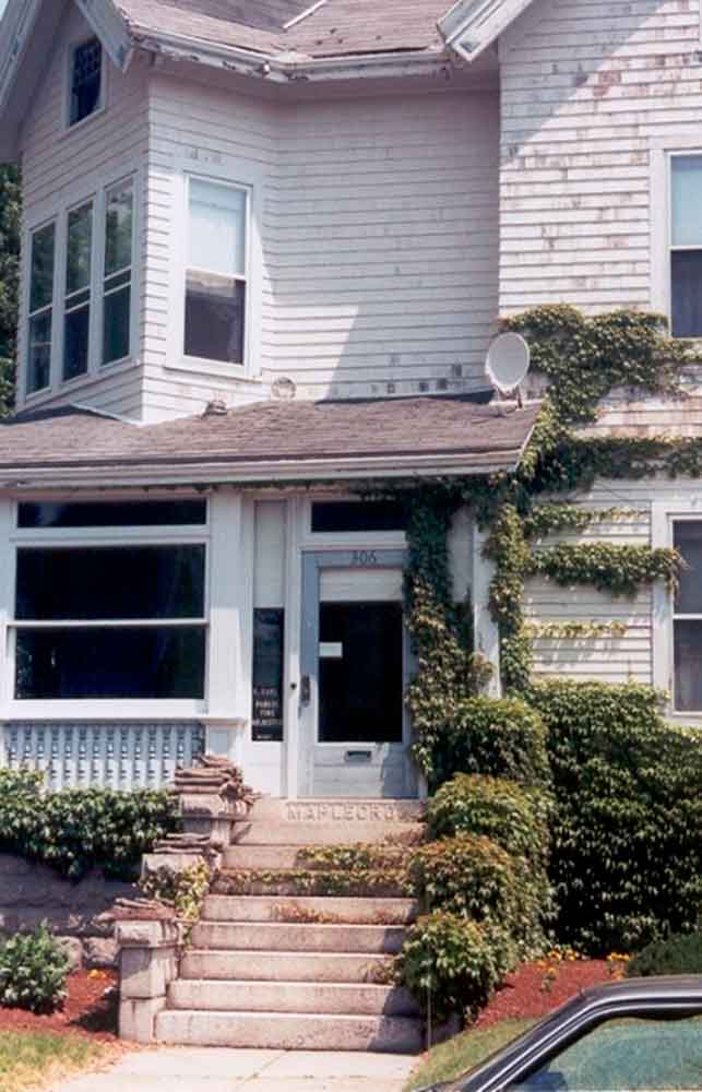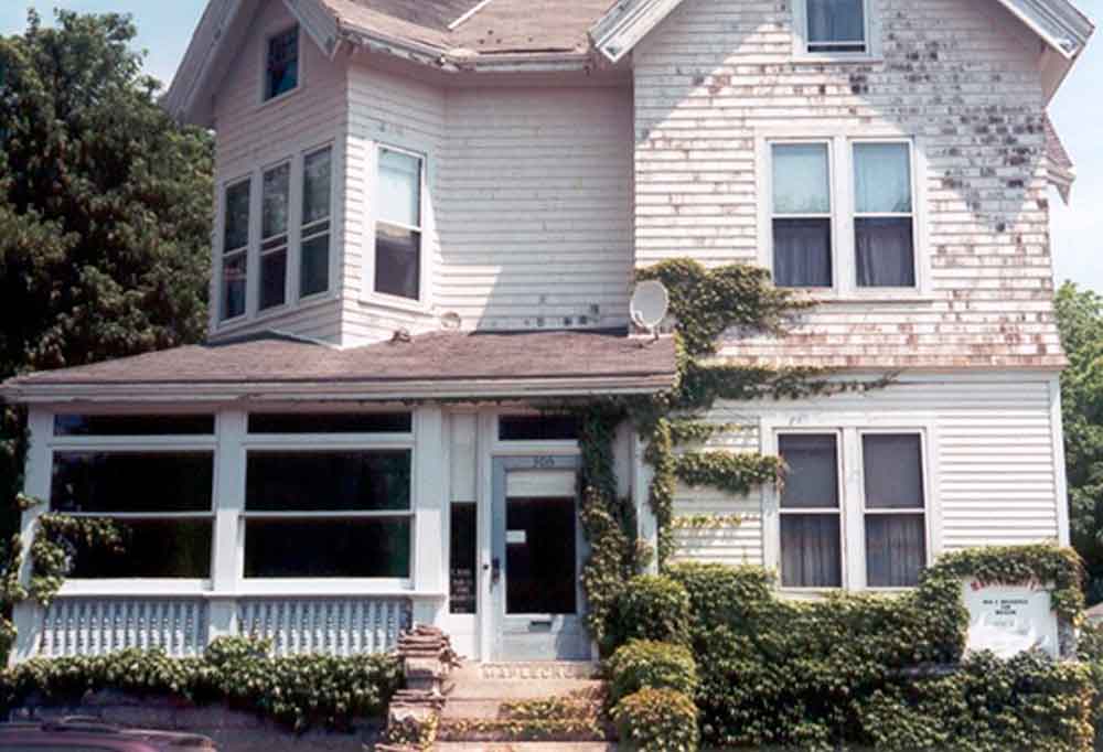 92 Second Street opened as a bed and breakfast in 1996, after existing as a private residence in all of the years previously. These photos of the outside of 92 Second Street span many years. The tan color of the original B&B was replaced with a drab green in 2005, after then owners LeeAnn Wilbur and Donald Woods had the Leary Press building demolished in April of that year. You can estimate the year of an image of the house by its color and the signage outside.