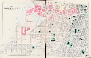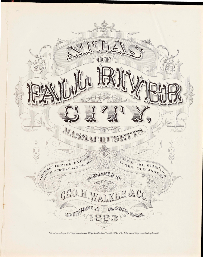 The State Library of Massachusetts has digitized and placed online the complete volume of the 1883 Fall River City Atlas. It is a lovely thing to behold and we greatly thank the State Library for making this project available for all of us to enjoy.