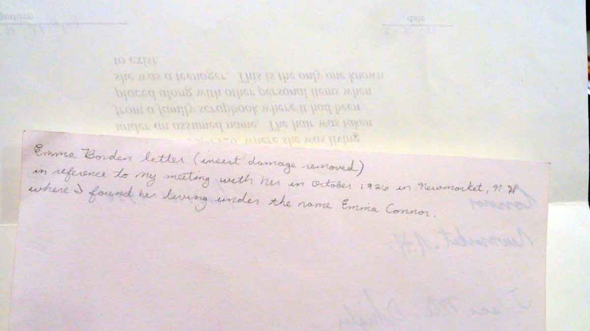 From this letter we are to believe that after a lifetime of remaining loyal to her sister Lizzie and even moving to Newmarket, NH, and changing the name on her mailbox to Connor, that Emma Borden would sell off some of her personal items, those relating to Lizzie, to a collector who contacts her.
