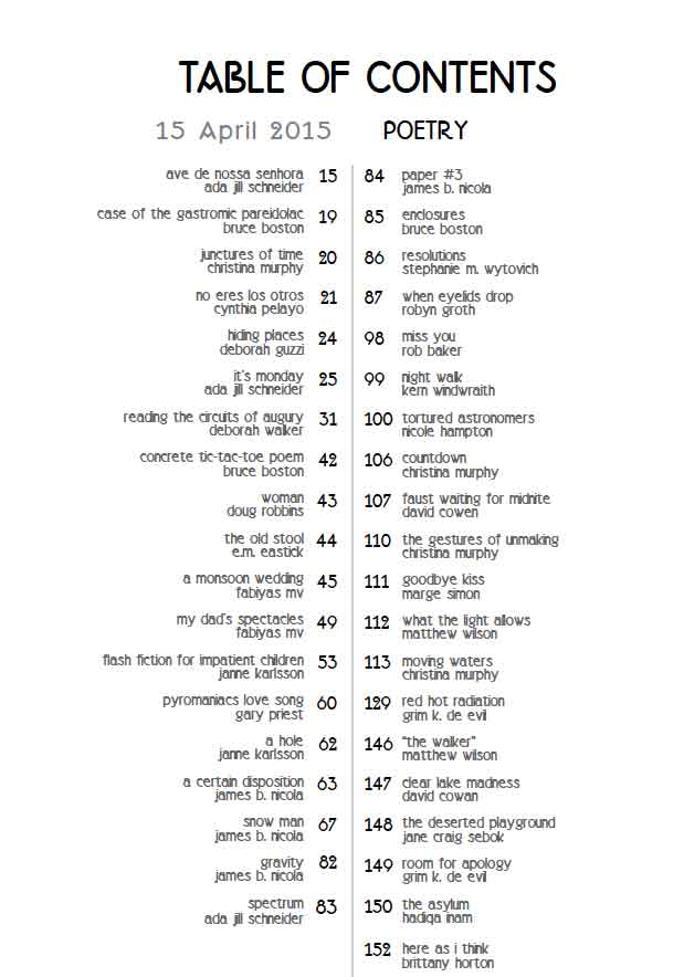 The Literary Hatchet publishes contemporary short fiction, poetry, humor, interviews and reviews by established and emerging writers and artists from around the world. Subjects range from mystery, murder, macabre, horror, monsters, ghosts, and things that go bump in the night. Now published 3 times a year!